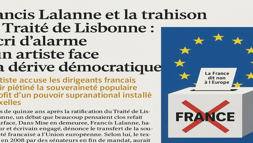 Plus de quinze ans après la ratification du Traité de Lisbonne, un débat que beaucoup pensaient clos refait surface. Le chanteur, écrivain et militant Francis Lalanne relance aujourd’hui la question de la légitimité juridique et politique de ce traité, qu’il qualifie de véritable trahison nationale.