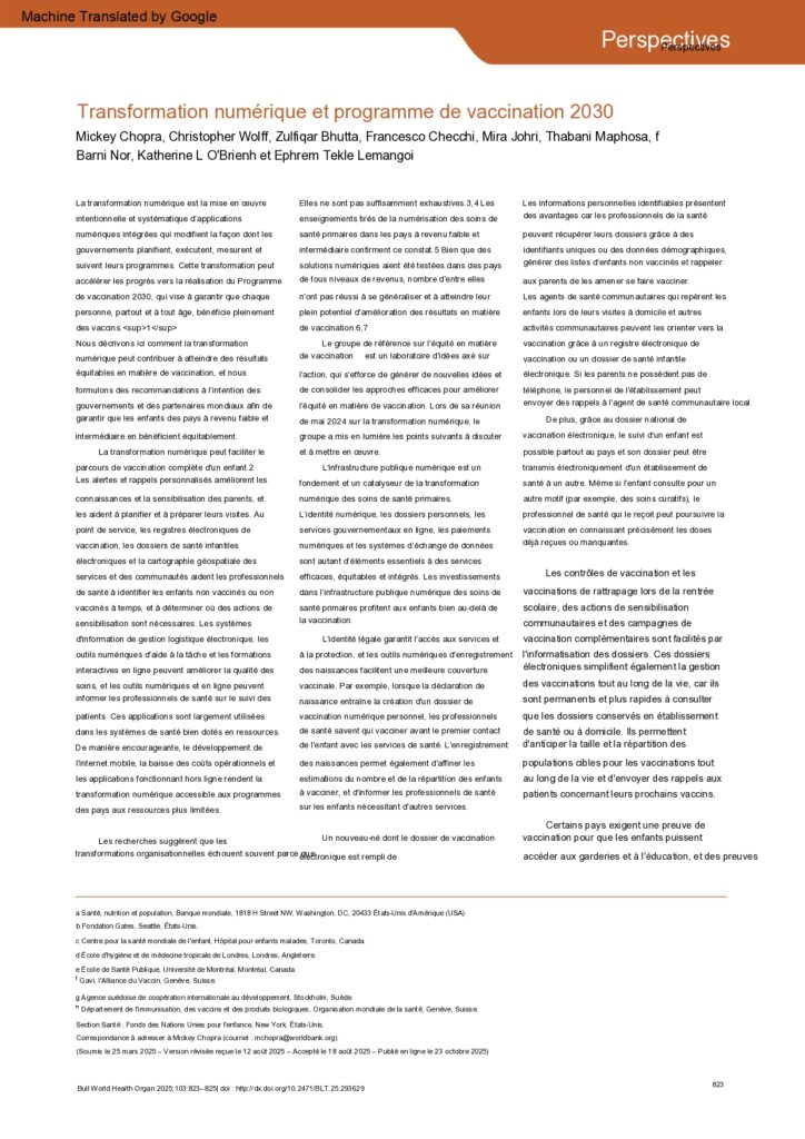 Il ne s’agit pas d’un ouvrage spéculatif, mais d’un document rédigé en langage clair, financé par la Fondation Gates et publié dans la revue officielle de l’Organisation mondiale de la santé.